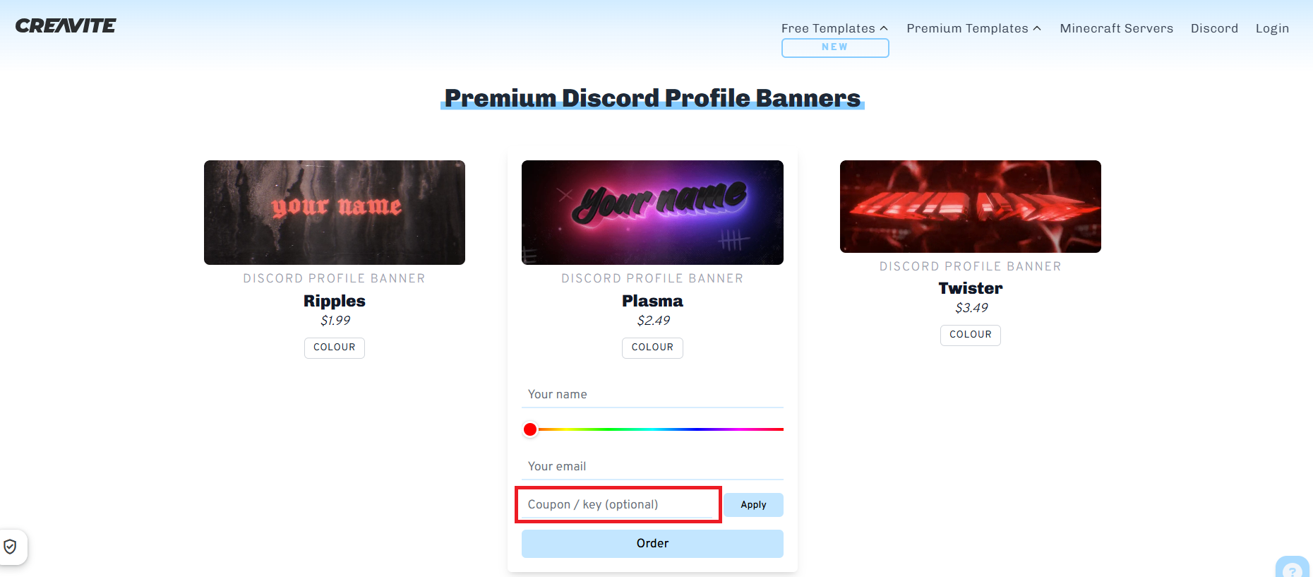 Start by going to the premium page and selecting the banner you’d like. Then fill out all the required information such as your name, chosen features, and email.